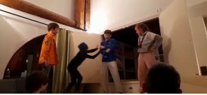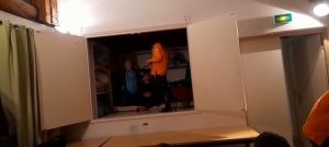 Une fois le repas pris, la vaisselle faite et rangée on peut enfin faire la veillée tant attendue. Toutefois personne ne vient ! Que se passe t-il ? Pour une fois c’est aux LJ de s’occuper de faire la veillée par petits groupes. Ils doivent préparer une petite pièce de théâtre sur un thème donné et jouer devant leurs camarades leurs créations.