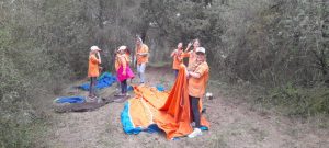 Le week-end a débuté avec une petite marche pour aller tout d’abord déposer les sacs au lieu de campement. La peuplade s’est ensuite rendue vers les belles dunes de Blausasc pour jouer à la tomate et pique-niquer. Tim en avait profité pour faire un petit rappel aux Louveteaux-Jeannettes et leur expliquer comment bien refaire son foulard défait.