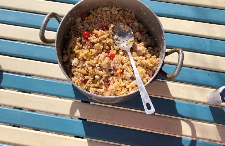 Puis après les rôles distribués il était temps de manger. Sous un beau soleil de février, nous profitons de la compagnie des uns et des autres tout en dégustant un délicieux repas concocté par nos intendants.