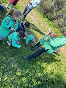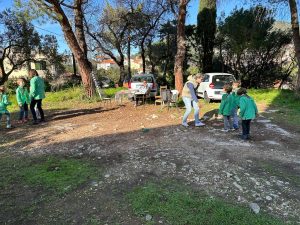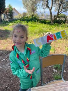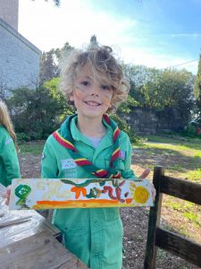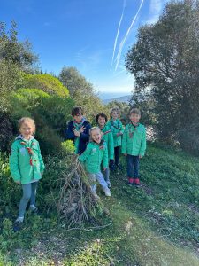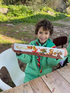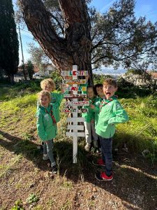 Après avoir bien rempli nos estomacs, nous avons fabriqué des croix, grâce au bois ramassé ce matin. Et pour finir, avec le bois restant… nous avons réalisé une jolie cabane pour nos amis les Farfadets.