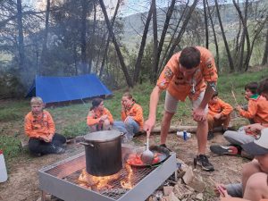 Une fois installés il fait déjà nuit et on est quand même fatigués de cette journée quelque peu épuisante. Mais nous recevons la visite des indiens que nous avons dérangé par nos cris incessants. Nous devons donc les aider afin de se faire pardonner et pouvoir quand même passer la nuit sur leur terrain. Je pense qu’il ont été satisfaits car Ils nous ont même offert des marshmallow et nous ont permis de passer une super nuit au calme de la forêt.