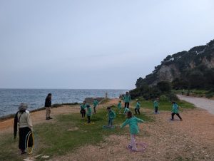Le lendemain matin, au réveil, après avoir rangé nos sacs et nos couchages, nous avons fait un petit réveil musculaire avant le petit déjeuner.