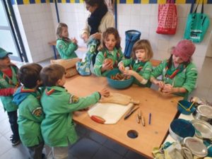 Pendant qu’un groupe apprenait les brêlages et fabriquait une partie de la cabane, l’autre groupe passait son permis couteau !! Ensuite, nous avons tourné. Nous sommes très fiers d’avoir réussi notre permis couteau !