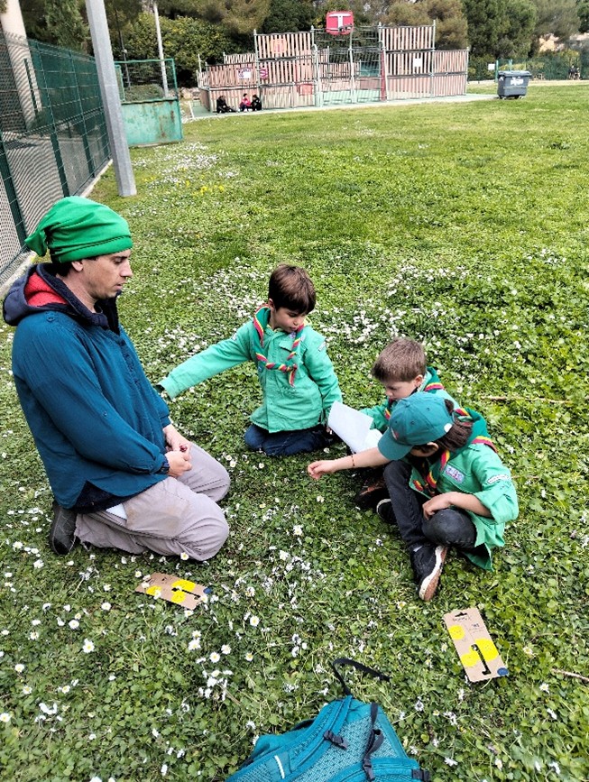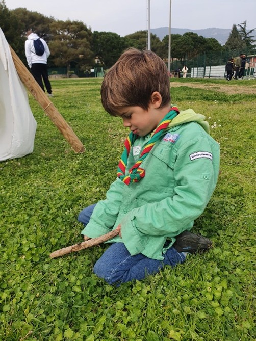Pendant qu’un groupe apprenait les brêlages et fabriquait une partie de la cabane, l’autre groupe passait son permis couteau !! Ensuite, nous avons tourné. Nous sommes très fiers d’avoir réussi notre permis couteau !