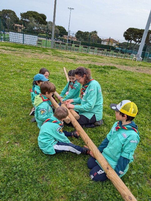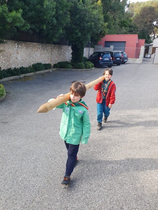 Et pour commencer, nous avons appris à construire une cabane, comme Marie Kingsley quand elle devait installer son campement. Cela nous prépare aussi au grand camp de cet été. Il a fallu porter les poteaux, les assembler avec les nœuds que nous avions appris et d’autres encore, puis monter la structure… et à la fin, il fallait tester sa solidité !!!